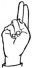 На ћирилици написано МАРТА ДОБРАНОВИЋ састоји се из 15 слова [?]. Исписано ћириличном једноручном азбуком за глувонеме:
